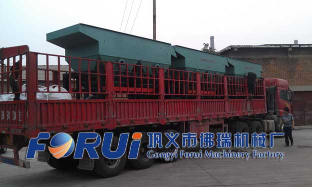 今日佛瑞机械成套砂金设备发往四川,用于洗选四川某地的砂金矿,此次发货为LTA1515/2跳汰机3台,摇床3台,料仓3台,给料机三台。
