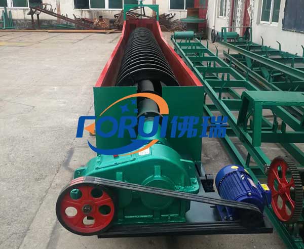 螺旋洗矿机是利用水的浮力作用,将粉尘和杂质于砂分离。经过螺旋片的搅动,达到滤水去杂质,提升输送目的。并且在提升过程中,也进行了拌和工作。是出砂达到搅拌均匀,无细、粗砂之分。