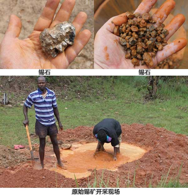 锡石的化学组成为SnO2,四方晶系,晶体呈双锥状、锥柱状,有时呈针状,比重6.3-6.5。锡石是锡矿物中锡含量最高的矿物,是金属锡的主要原料来源。由于锡石多呈晶体状态存在,单体解离度较高,比重又远大于其他废石,因此锡石主要通过重力选矿的方法获取。对于砂锡矿中的锡石,采选的方法更为简单,通过人工洗选就可以获得品质较好的锡石,但是选矿效率低下,难以大规模开采,人工劳动强度也非常大,因此就需要锡矿选矿生产线来实现大规模,高指标的锡矿洗选提纯工作。下面就是一张锡矿石原生开采场面的图片: