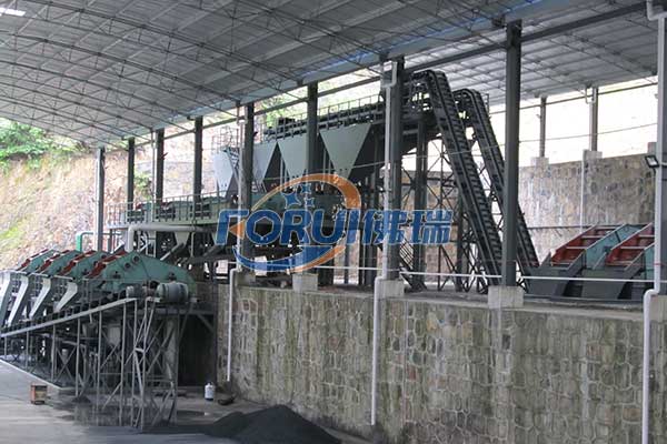 由于重晶石矿的常用选矿方法只有重选法一种,而重选又是最节能,高效,环保的选矿方法,因此在重晶石选矿厂的应用非常普遍。重晶石选矿生产线也就是以重选设备为核心的重力选矿生产线,一般有破碎机,振动筛,跳汰机,脱水筛等设备组成,个别重晶石矿含泥量较大还需要增加洗矿机。以下就是佛瑞机械为某客户设计建造的重晶石选矿生产线之一: