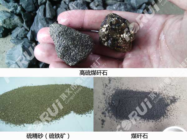 聽 聽 实际上,从高硫煤矸石中提硫是非常简单的,因为煤矸石中的硫铁矿大多为粗粒嵌布的集合体形式存在,与煤矸石有着明显的界限和比重差,通过破碎,筛分使煤矸石和硫铁矿单体解离,然后用重力选矿的方法和设备就能从煤矸石中把硫铁矿提取出来,而且效率高,效果好,下图是从煤矸石中提取硫铁矿的效果展示: